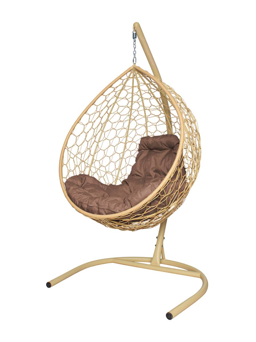 Подвесное кресло КАПЛЯ с ротангом бежевое, подушка Какао - купить в интернет-магазине Diopt.ru