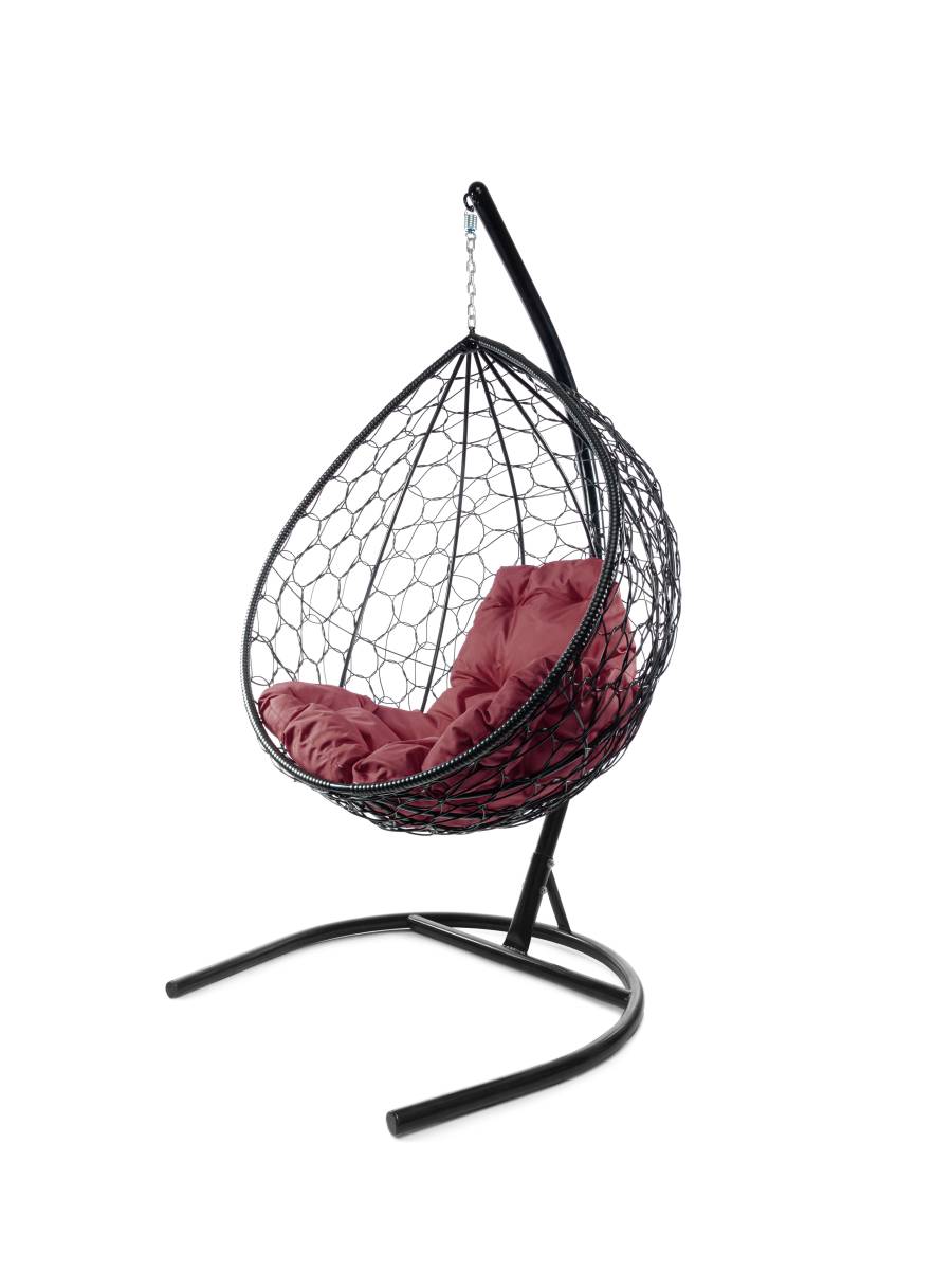 Подвесное кресло КАПЛЯ с ротангом чёрное, бордовая подушка - купить в интернет-магазине Diopt.ru