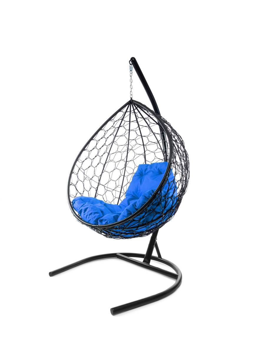 Подвесное кресло КАПЛЯ с ротангом чёрное, синяя подушка - купить в интернет-магазине Diopt.ru