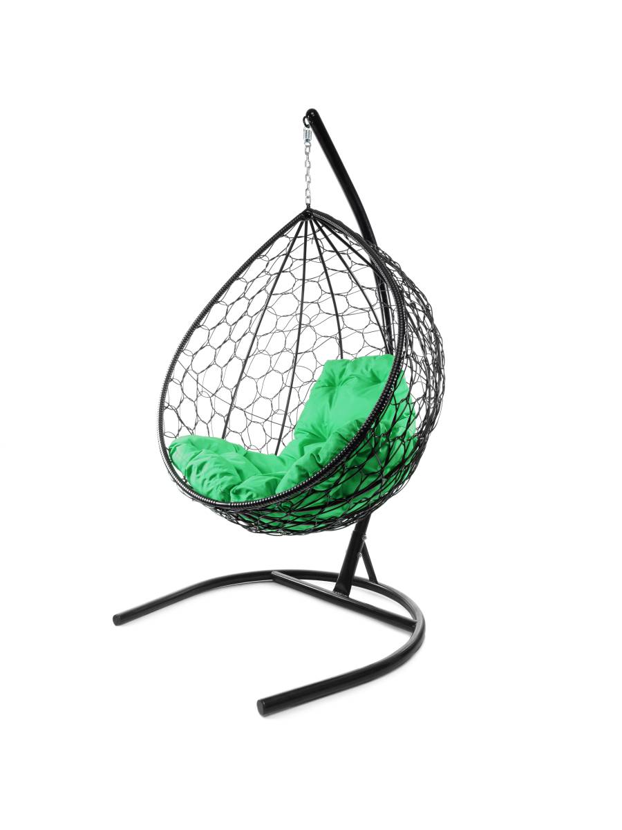 Подвесное кресло КАПЛЯ с ротангом чёрное, зелёная подушка - купить в интернет-магазине Diopt.ru