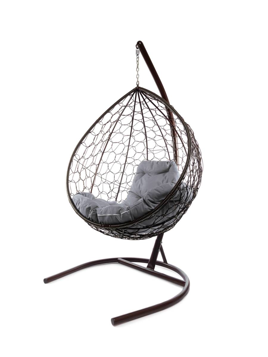 Подвесное кресло КАПЛЯ с ротангом коричневое, серая подушка - купить в интернет-магазине Diopt.ru