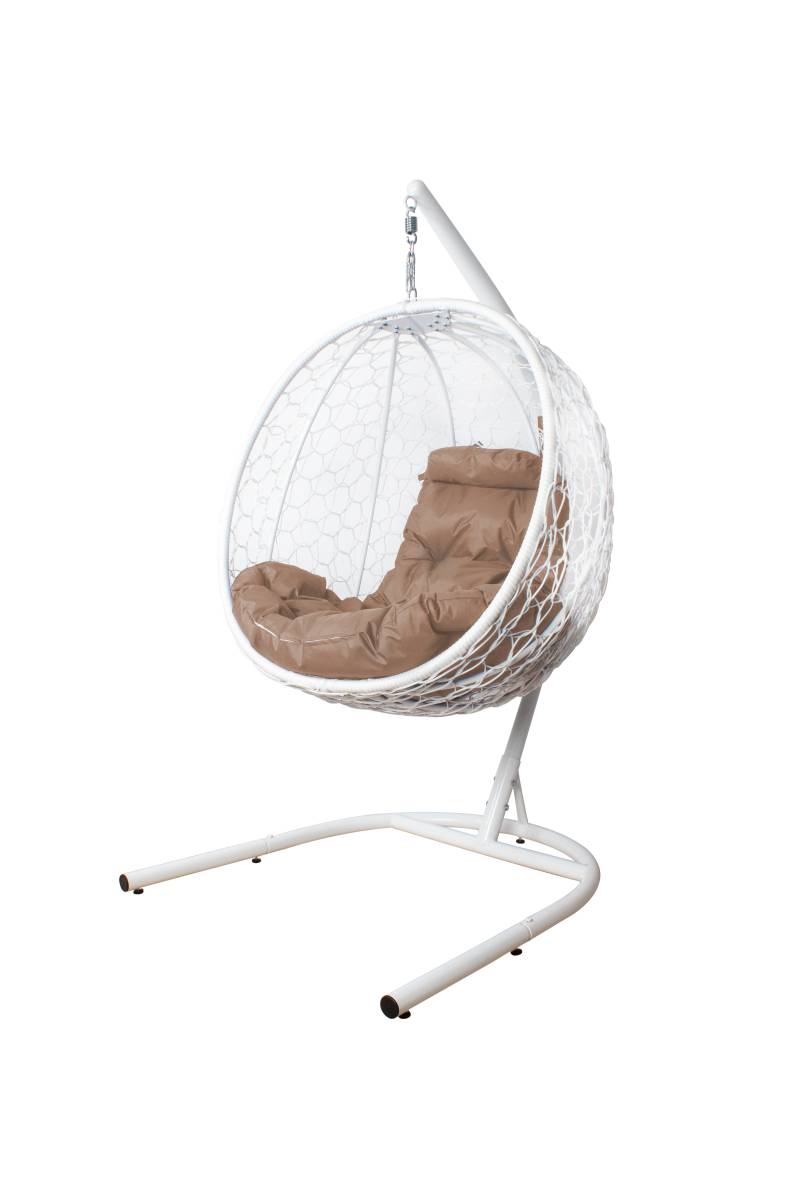 Подвесное кресло КАПЛЯ складной, с ротангом белое, бежевая подушка - купить в интернет-магазине Diopt.ru
