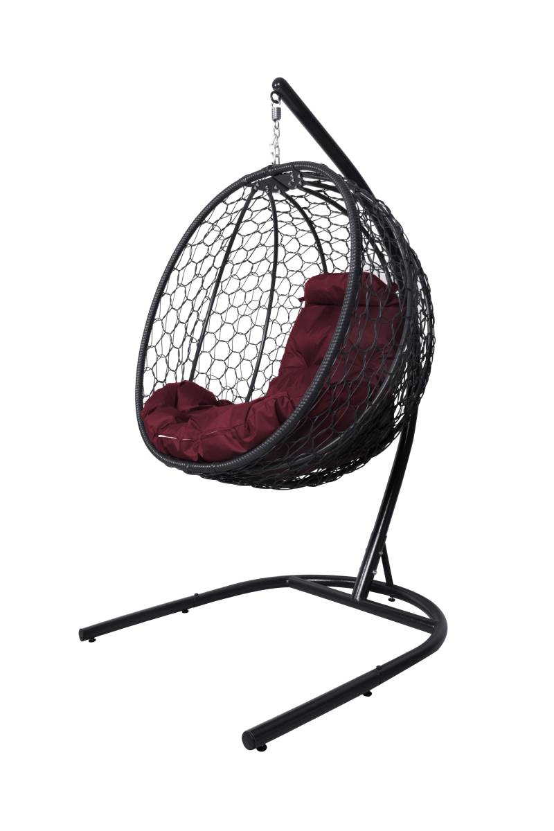 Подвесное кресло КАПЛЯ складной, с ротангом чёрное, бордовая подушка: цены, фото - купить в интернет-магазине Diopt.ru
