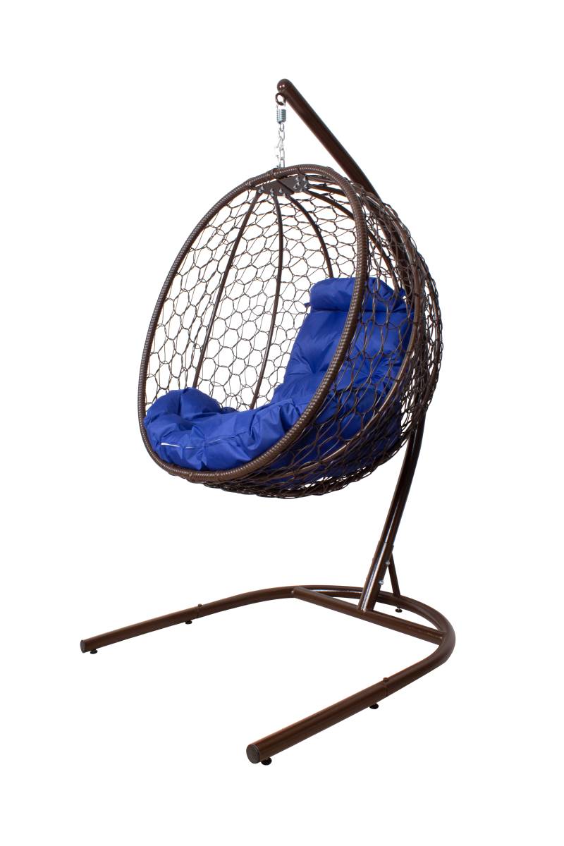 Подвесное кресло КАПЛЯ складной, с ротангом коричневое, синяя подушка - купить в интернет-магазине Diopt.ru