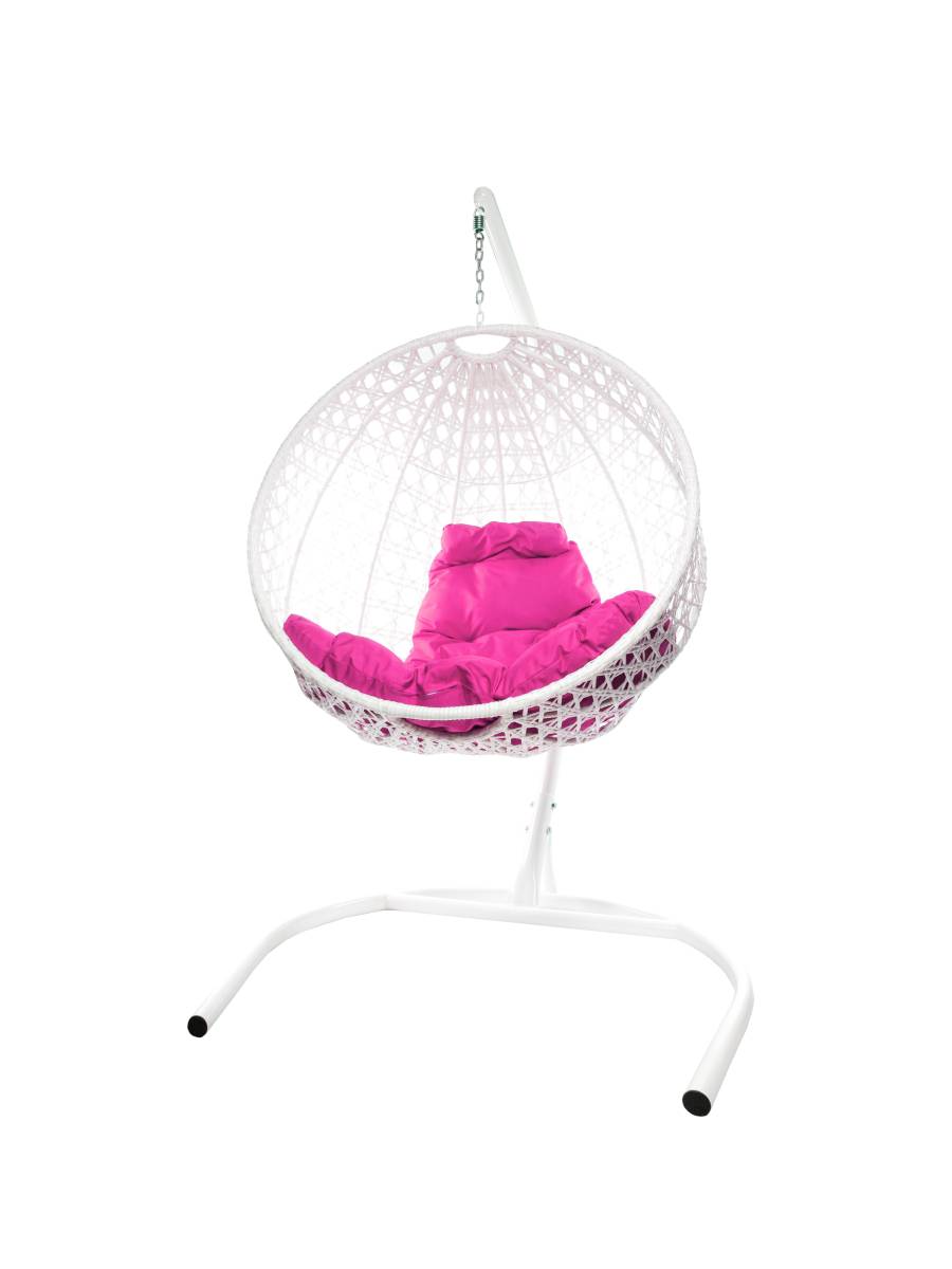 Подвесное кресло КРУГ ЛЮКС с ротангом белое, розовая подушка - купить в интернет-магазине Diopt.ru
