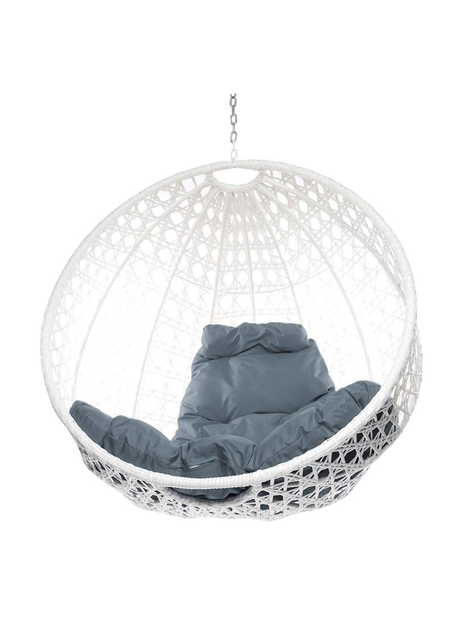 Подвесное кресло КРУГ ЛЮКС с ротангом, белый, серая подушка (БЕЗ СТОЙКИ): цены, фото - купить в интернет-магазине Diopt.ru