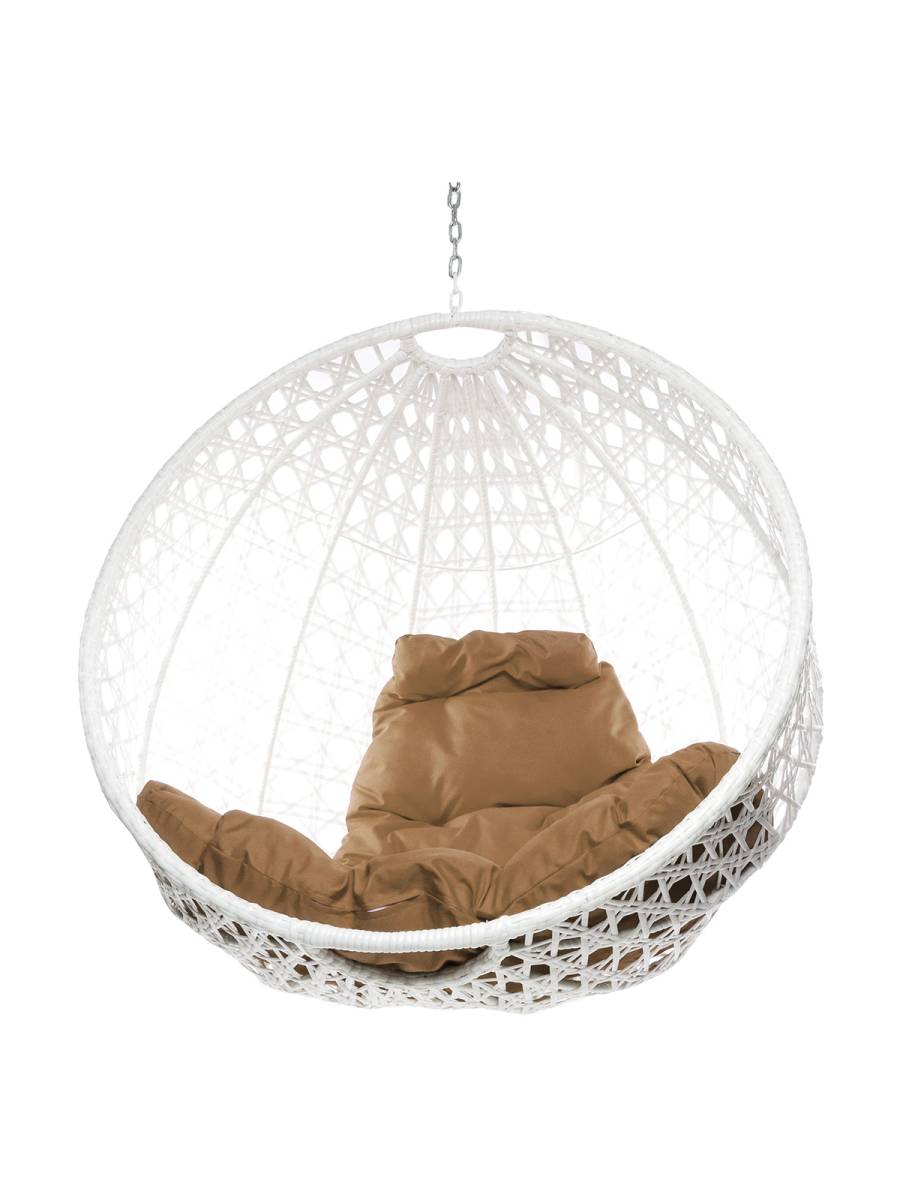 Подвесное кресло КРУГ ЛЮКС с ротангом, белый, желтый подушка (БЕЗ СТОЙКИ): цены, фото - купить в интернет-магазине Diopt.ru