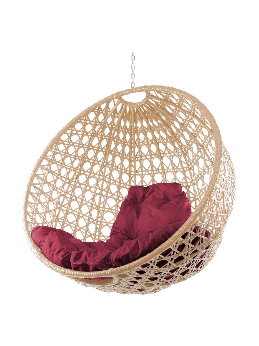 Подвесное кресло КРУГ ЛЮКС с ротангом, бежевое, бордовая подушка (БЕЗ СТОЙКИ) - купить в интернет-магазине Diopt.ru