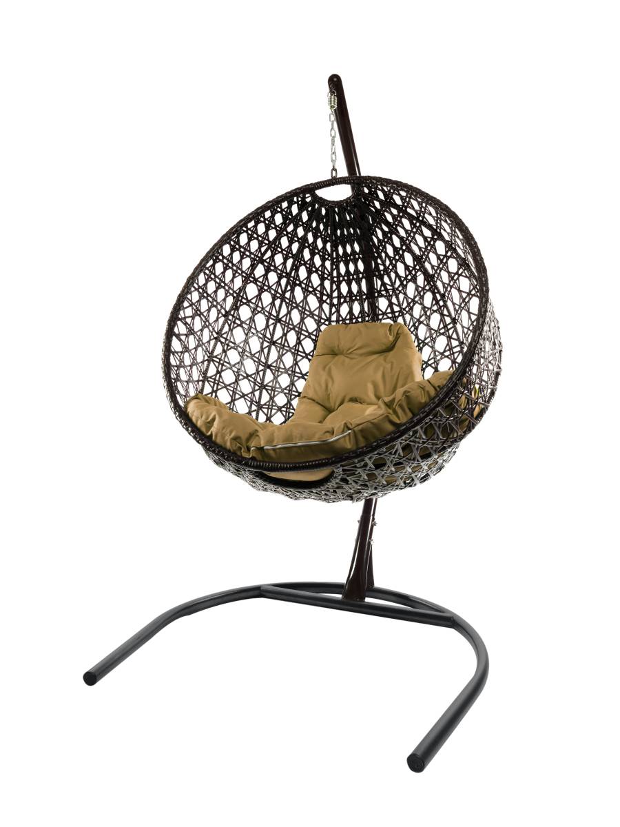 Подвесное кресло КРУГ ЛЮКС с ротангом чёрное, бежевая подушка - купить в интернет-магазине Diopt.ru