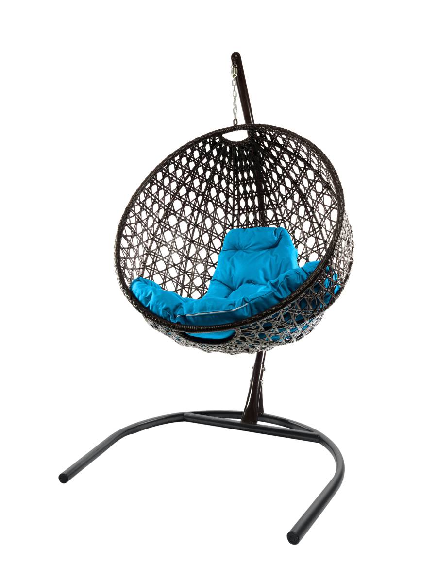Подвесное кресло КРУГ ЛЮКС с ротангом чёрное, голубая подушка - купить в интернет-магазине Diopt.ru