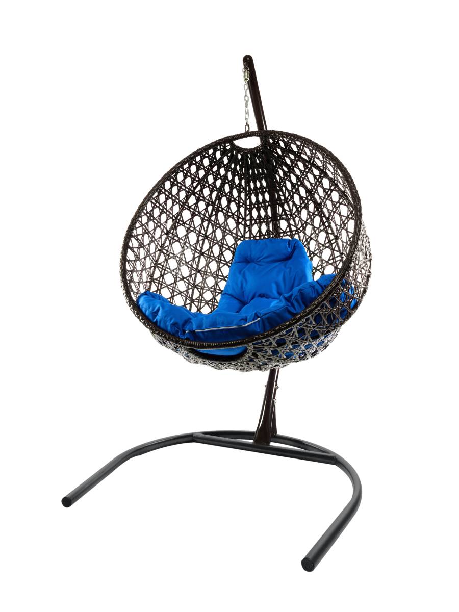 Подвесное кресло КРУГ ЛЮКС с ротангом чёрное, синяя подушка - купить в интернет-магазине Diopt.ru