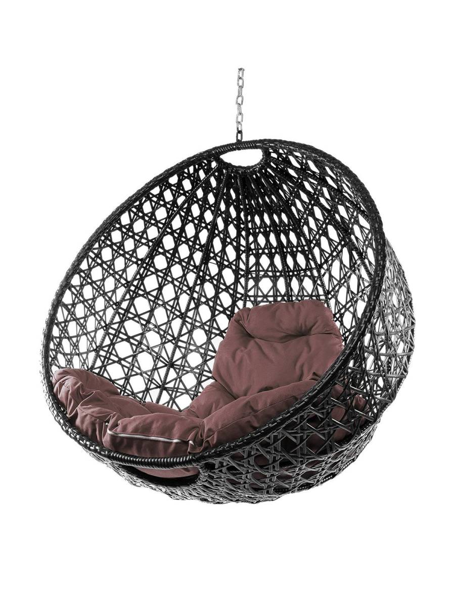 Подвесное кресло КРУГ ЛЮКС с ротангом, чёрный, коричневая подушка (БЕЗ СТОЙКИ): цены, фото - купить в интернет-магазине Diopt.ru