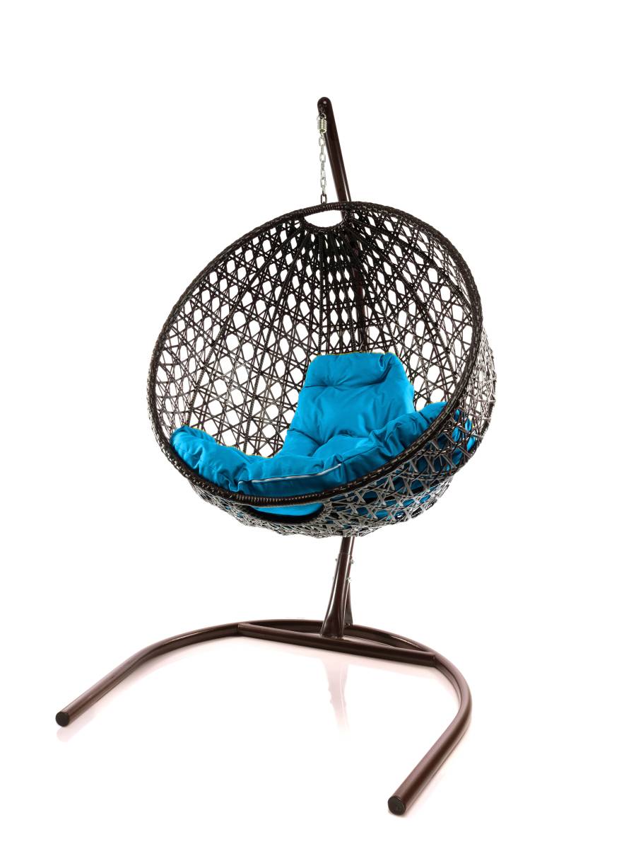 Подвесное кресло КРУГ ЛЮКС с ротангом коричневое, голубая подушка: цены, фото - купить в интернет-магазине Diopt.ru