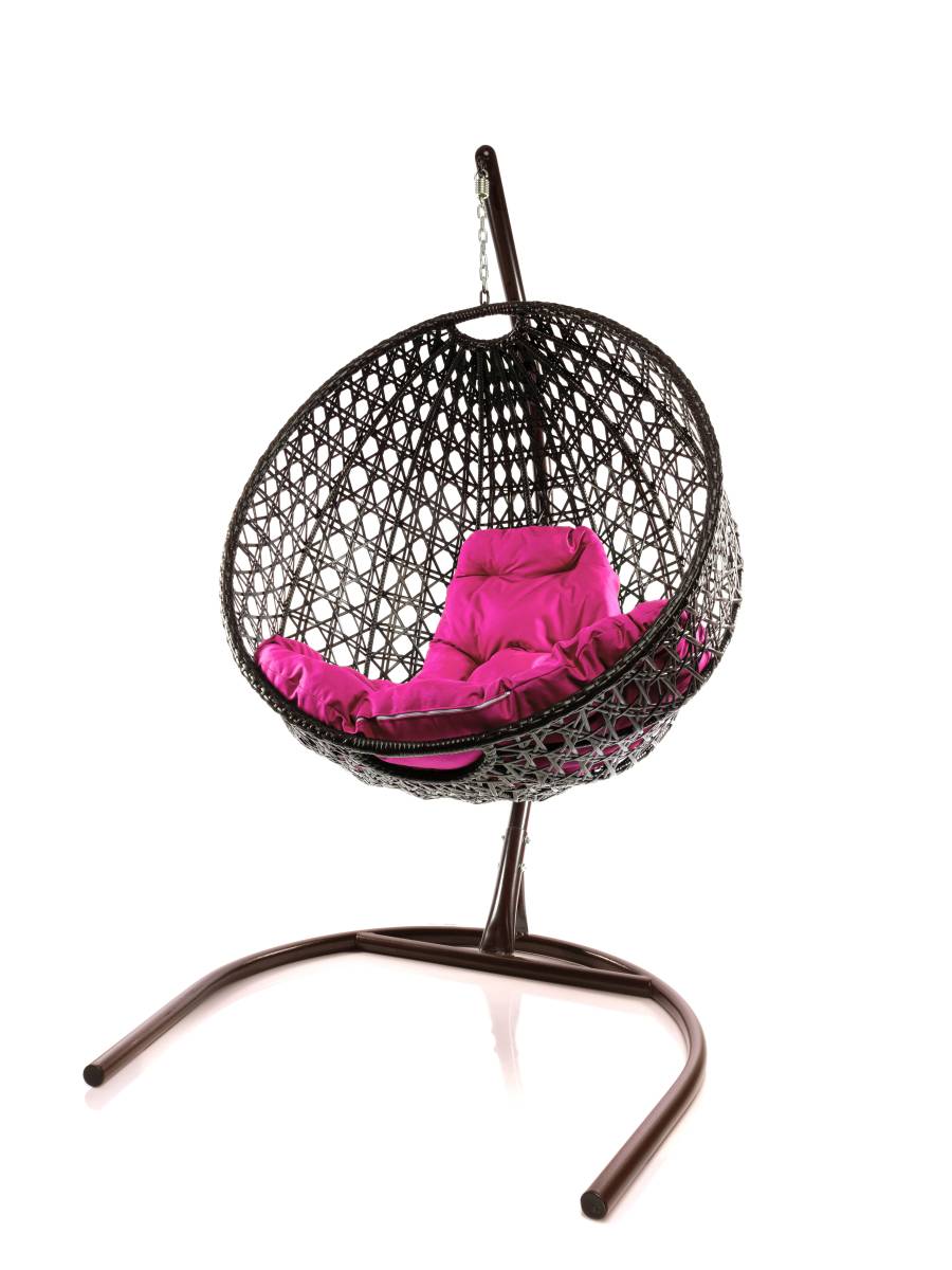 Подвесное кресло КРУГ ЛЮКС с ротангом коричневое, розовая подушка: цены, фото - купить в интернет-магазине Diopt.ru