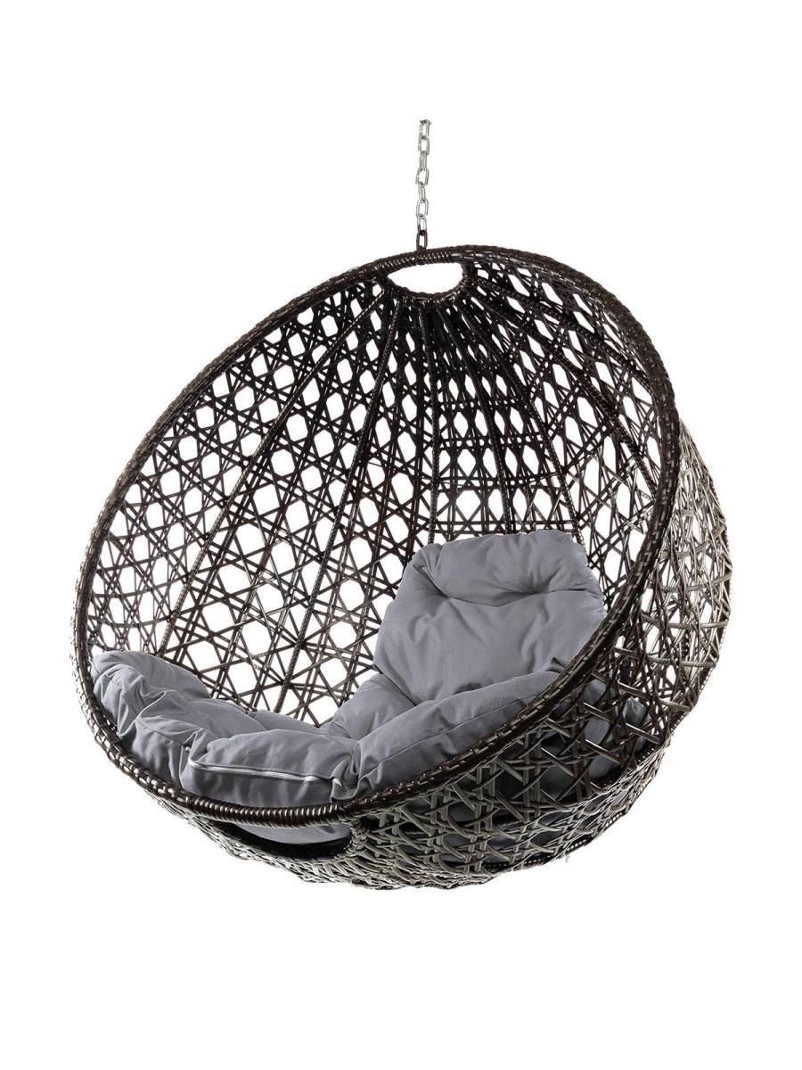 Подвесное кресло КРУГ ЛЮКС с ротангом, коричневый, серая подушка (БЕЗ СТОЙКИ): цены, фото - купить в интернет-магазине Diopt.ru