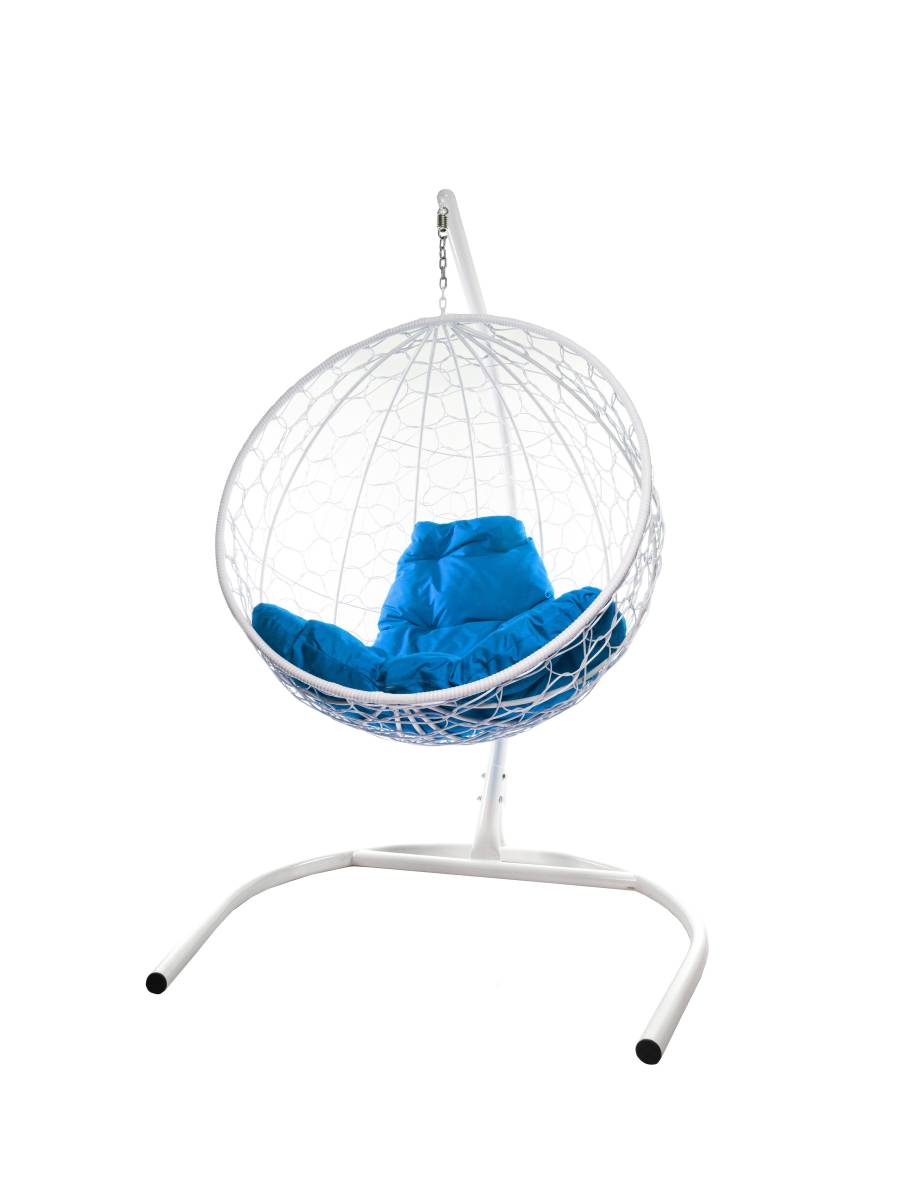 Подвесное кресло КРУГ с ротангом белое, синяя подушка - купить в интернет-магазине Diopt.ru