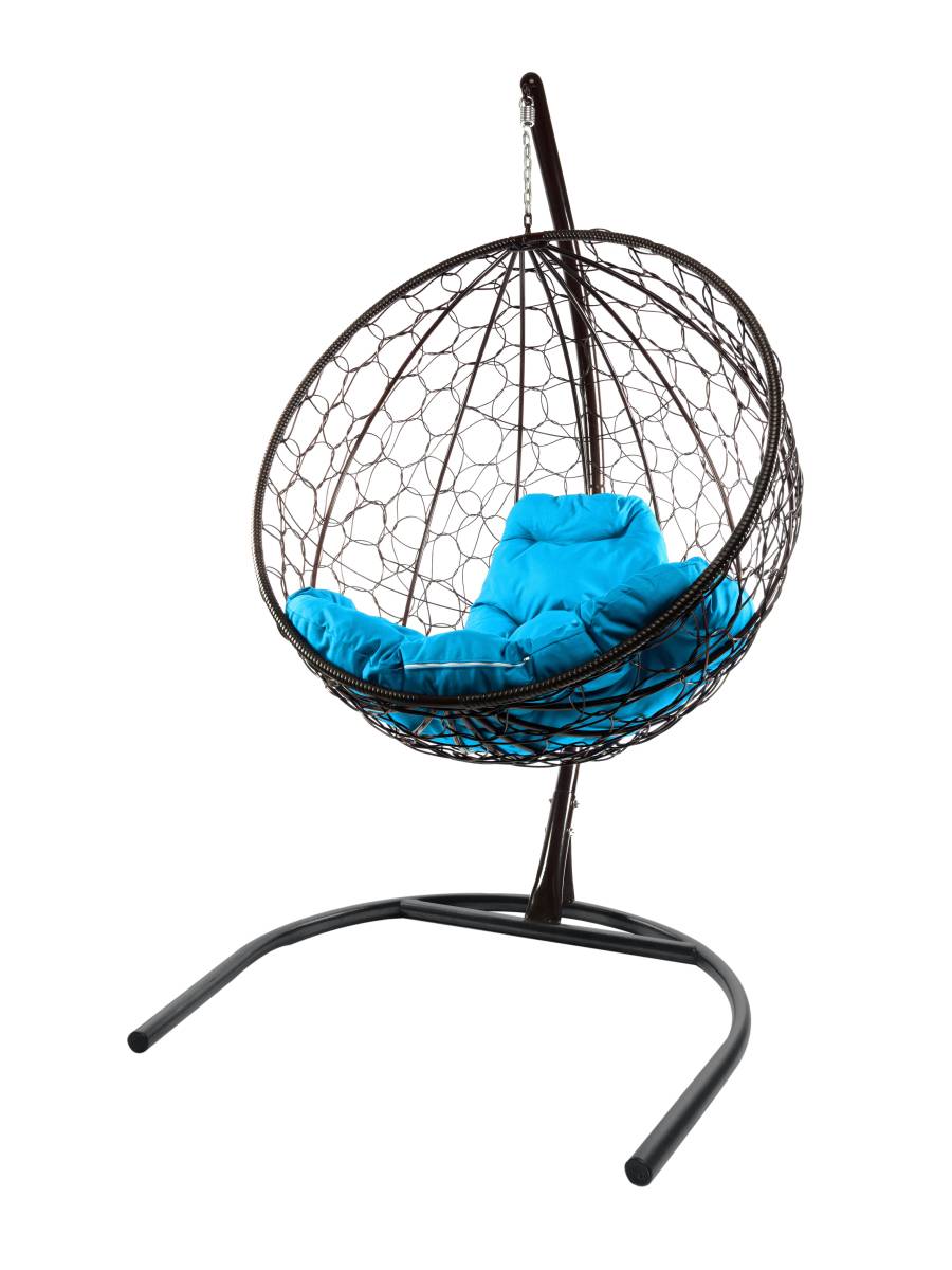 Подвесное кресло КРУГ с ротангом чёрное, голубая подушка - купить в интернет-магазине Diopt.ru