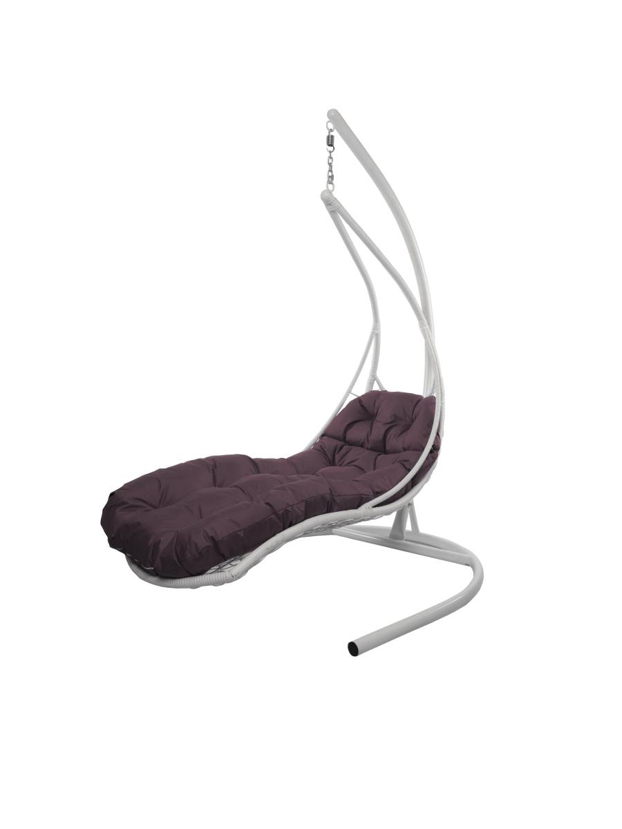 Подвесное кресло ЛЕЖАЧЕЕ, с ротангом белое, бордовая подушка: цены, фото - купить в интернет-магазине Diopt.ru