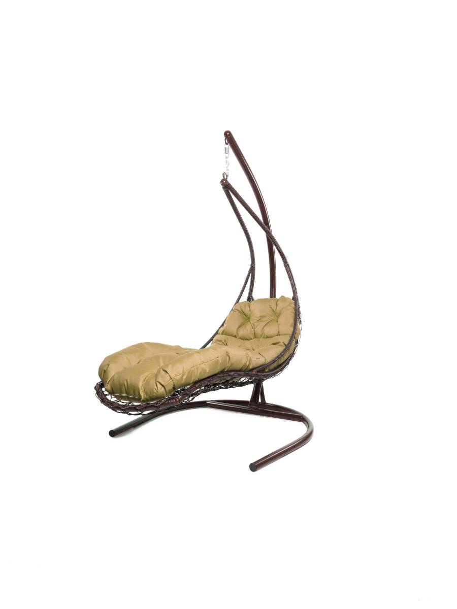 Подвесное кресло ЛЕЖАЧЕЕ, с ротангом коричневое, бежевая подушка: цены, фото - купить в интернет-магазине Diopt.ru
