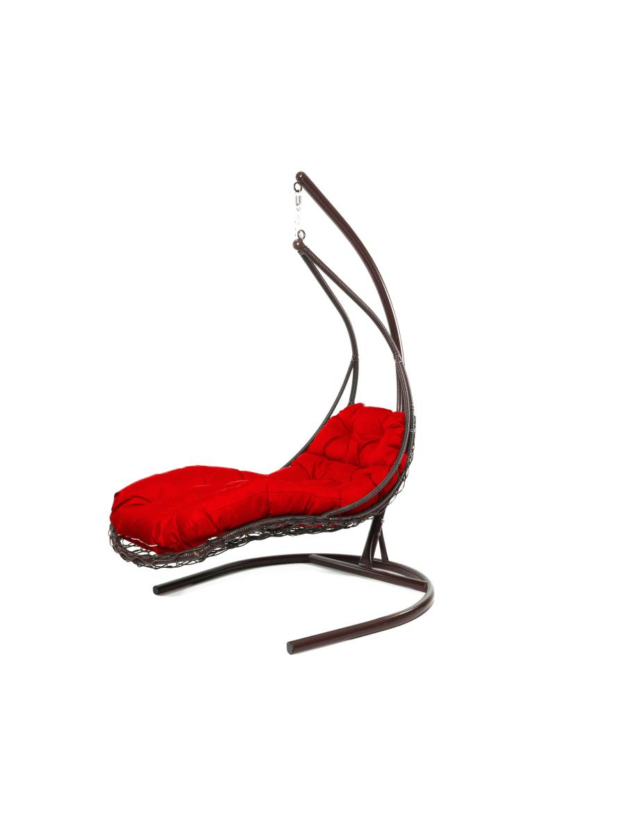 Подвесное кресло ЛЕЖАЧЕЕ, с ротангом коричневое, красная подушка