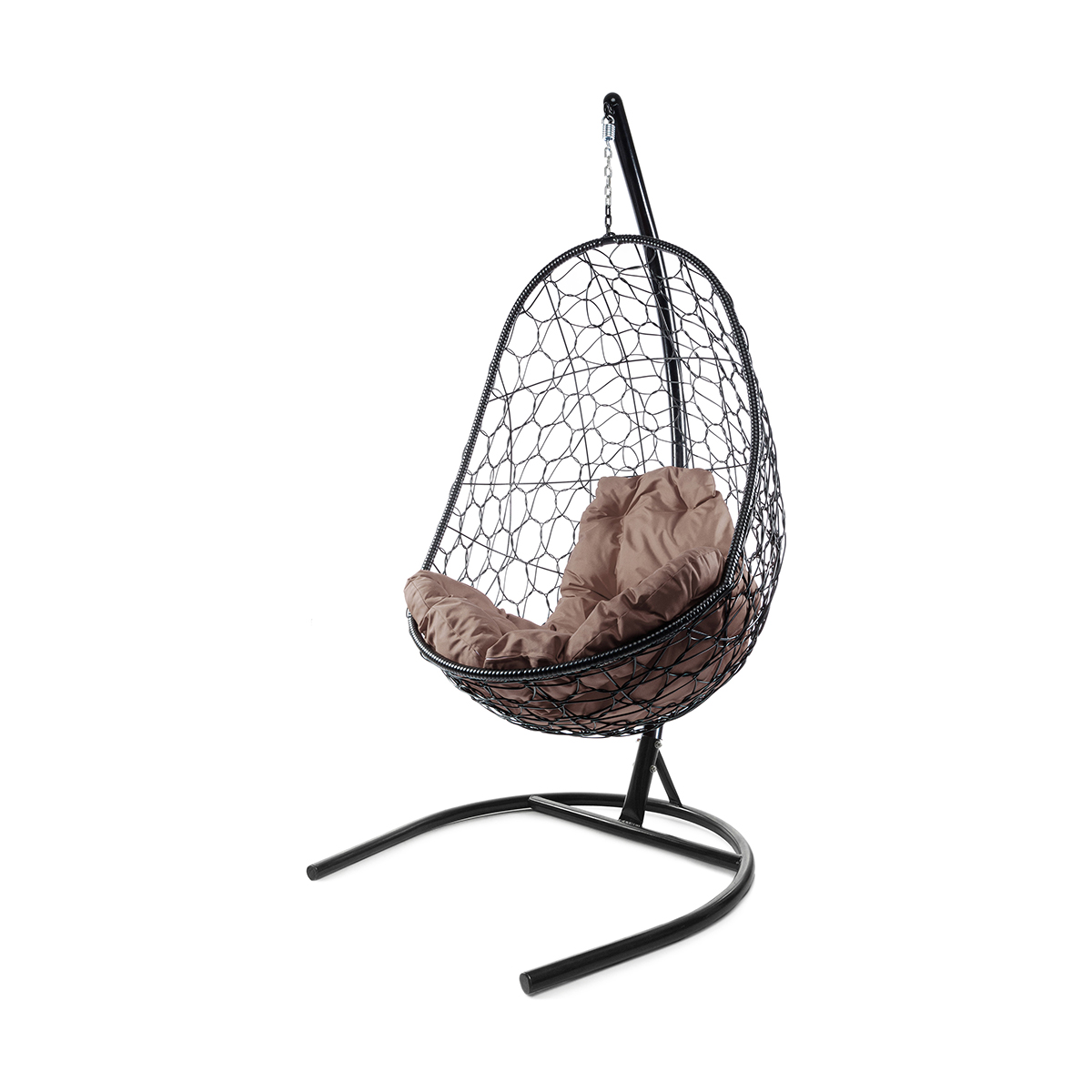Подвесное кресло ОВАЛ с ротангом чёрное, коричневая подушка - купить в интернет-магазине Diopt.ru