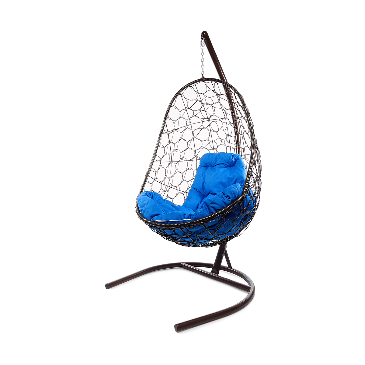 Подвесное кресло ОВАЛ с ротангом коричневое, синяя подушка - купить в интернет-магазине Diopt.ru