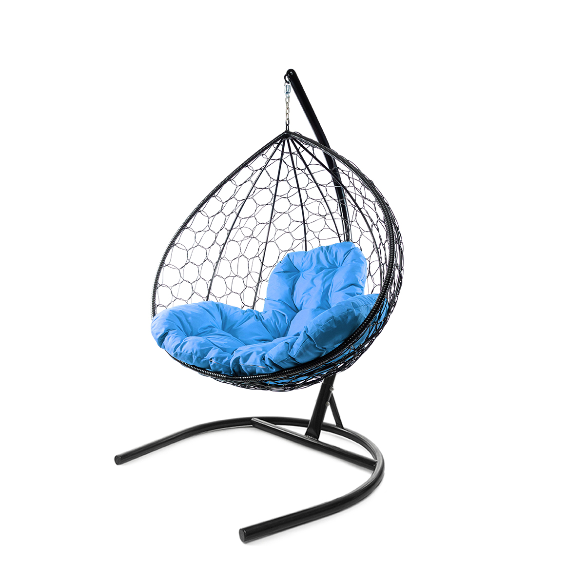 Подвесное кресло XL с ротангом чёрное, голубая подушка - купить в интернет-магазине Diopt.ru