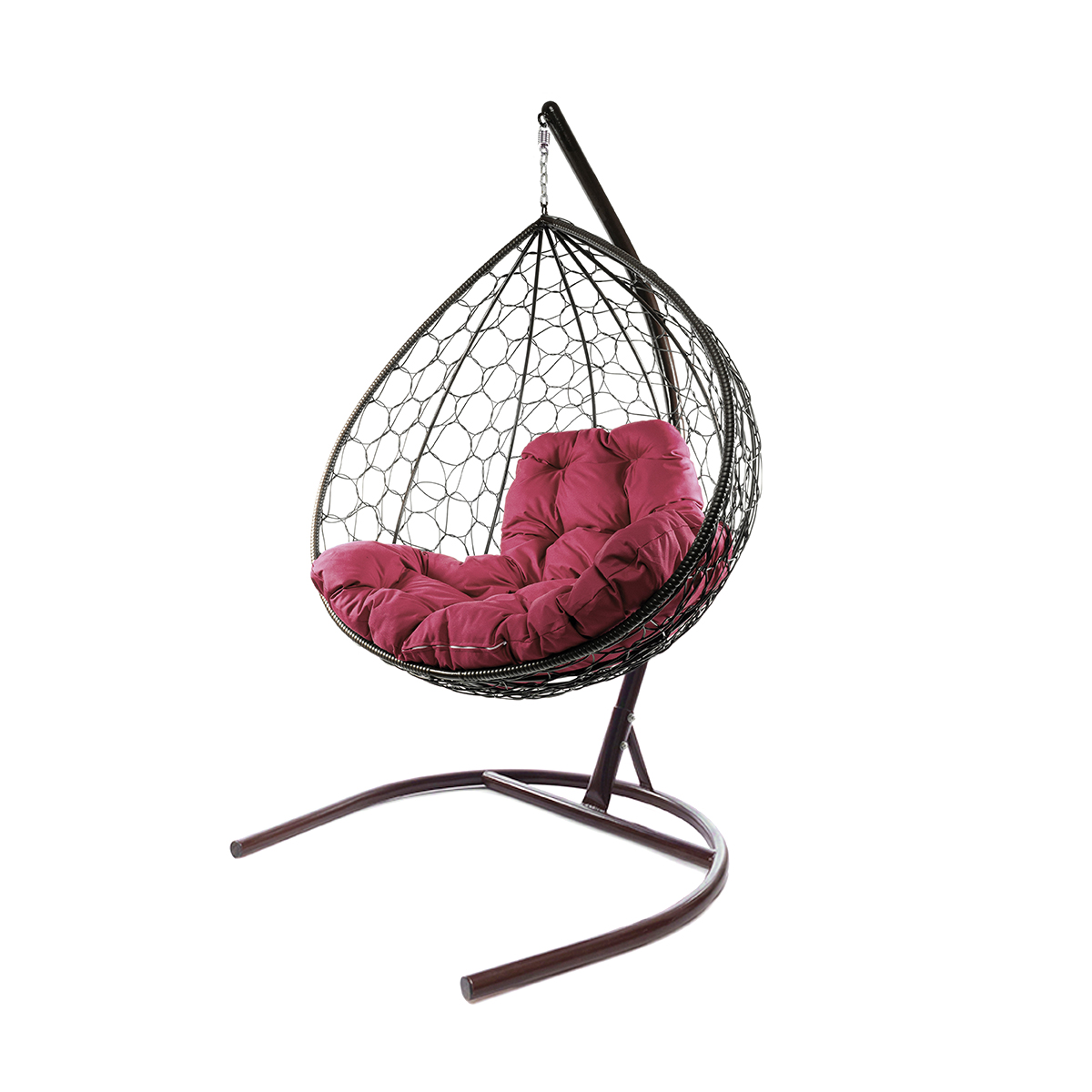 Подвесное кресло XL с ротангом коричневое, бордовая подушка - купить в интернет-магазине Diopt.ru