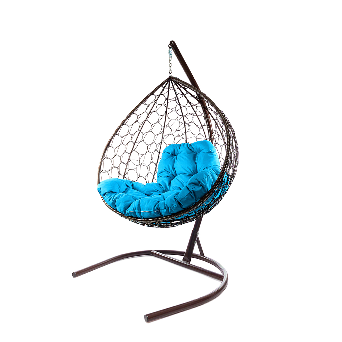 Подвесное кресло XL с ротангом коричневое, голубая подушка - купить в интернет-магазине Diopt.ru
