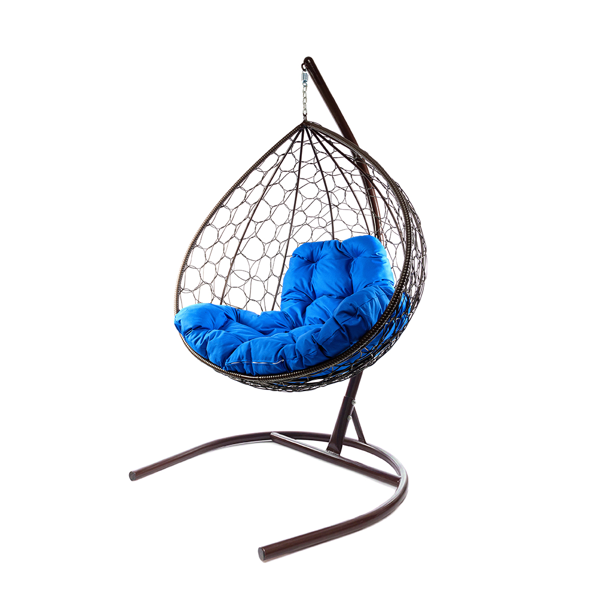 Подвесное кресло XL с ротангом коричневое, синяя подушка - купить в интернет-магазине Diopt.ru