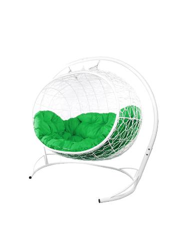 Подвесной диван УЛЕЙ с ротангом белый, зелёная подушка - купить в интернет-магазине Diopt.ru