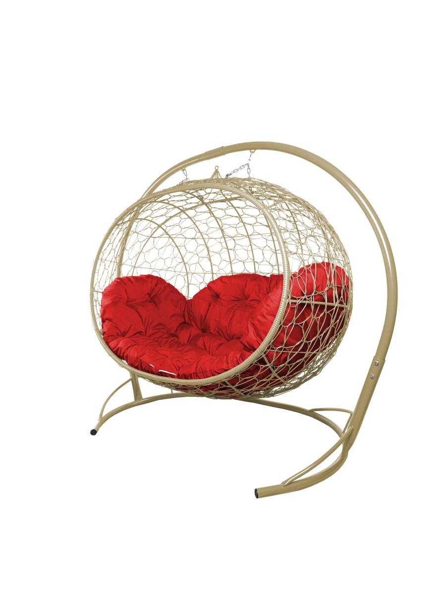 Подвесной диван УЛЕЙ с ротангом бежевый, красная подушка - купить в интернет-магазине Diopt.ru