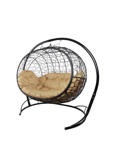 Подвесной диван УЛЕЙ с ротангом чёрный, бежевая подушка