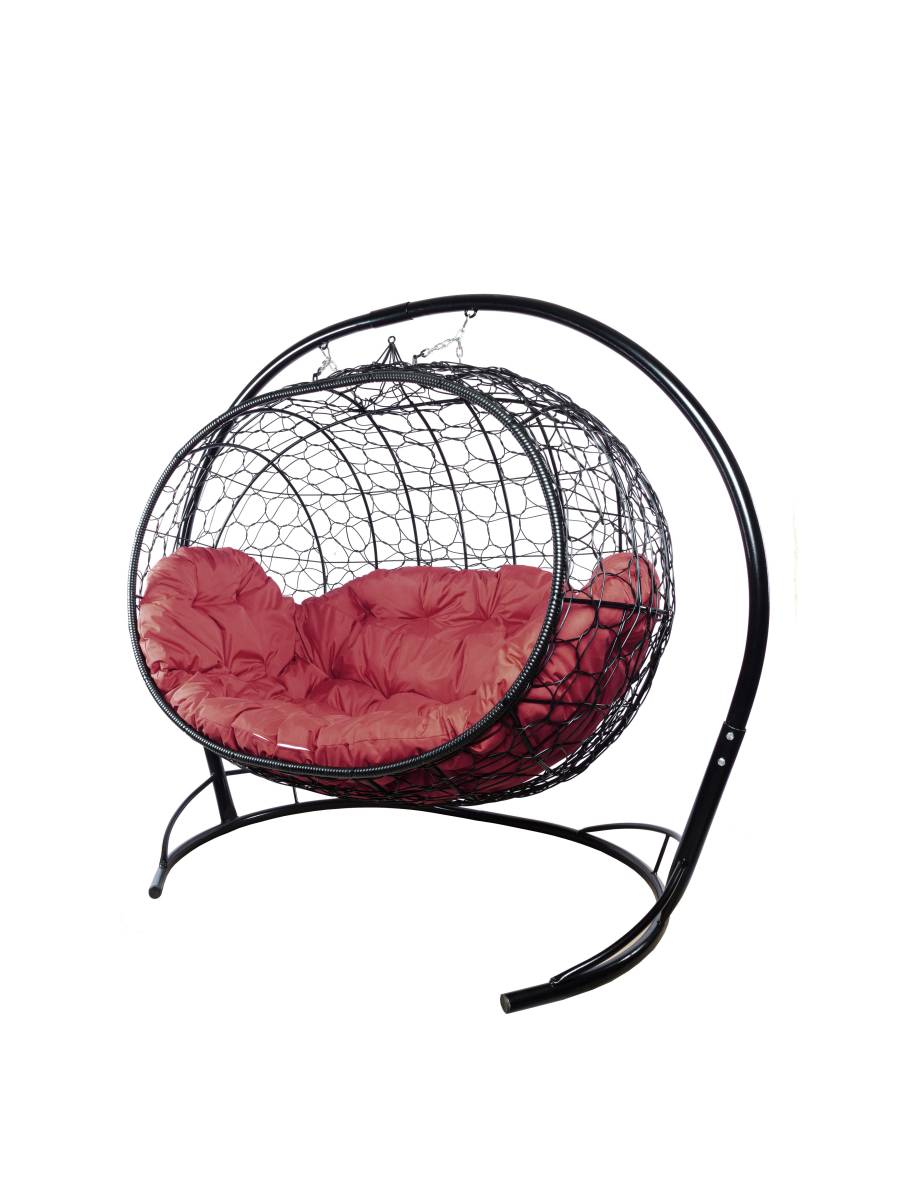 Подвесной диван УЛЕЙ с ротангом чёрный, бордовая подушка - купить в интернет-магазине Diopt.ru