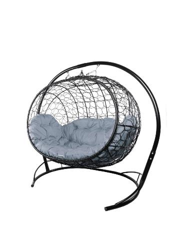 Подвесной диван УЛЕЙ с ротангом чёрный, серая подушка