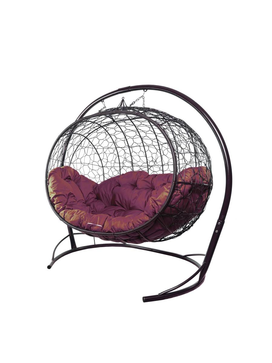 Подвесной диван УЛЕЙ с ротангом коричневый, бордовая подушка: цены, фото - купить в интернет-магазине Diopt.ru