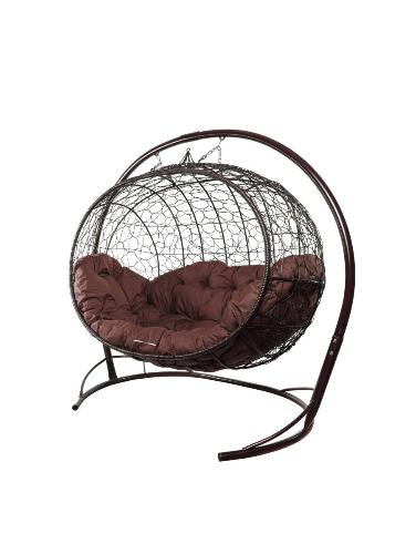 Подвесной диван УЛЕЙ с ротангом коричневый, коричневая подушка