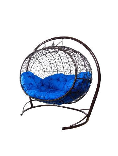 Подвесной диван УЛЕЙ с ротангом коричневый, синяя подушка - купить в интернет-магазине Diopt.ru