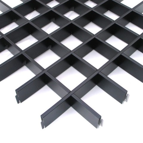 Классический потолок Грильято представляет собой решетку, состоящую из алюминиевых или оцинкованных U-образных профилей, соединенных непосредственно друг с другом без дополнительной подсистемы из Т-профиля. Такая конструкция оптимальна для помещений, где отсутствует необходимость регулярного обслуживания инженерных коммуникаций, расположенных над потолком.