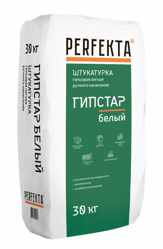 Штукатурка гипсовая PERFEKTA® Гипстар белый предназначена для высококачественного оштукатуривания потолков и стен, создавая после высыхания прочный паропроницаемый и трещиностойкий слой, который после глянцевания не требует дополнительного шпаклевания.