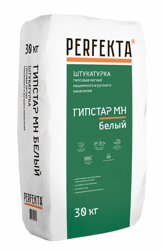 Штукатурка гипсовая PERFEKTA® Гипстар МН белый предназначена для высококачественного оштукатуривания потолков и стен, создавая после высыхания прочный паропроницаемый и трещиностойкий слой, который после глянцевания не требует дополнительного шпаклевания.