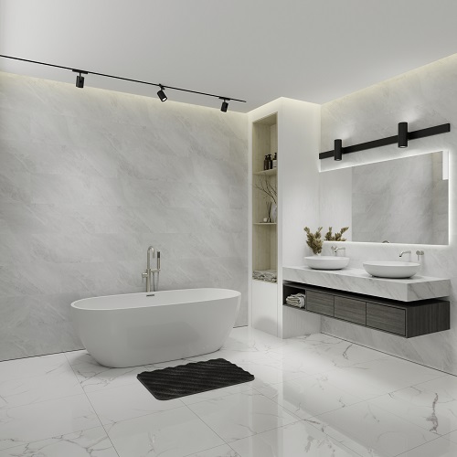 Полная устойчивость к влаге: Благодаря своей структуре, основанной на каменно-полимерных материалах, панель не впитывает жидкость. Её характеристики остаются неизменными даже после продолжительного воздействия воды — это делает плитку оптимальным вариантом для душевых, кухонь и других влажных зон.