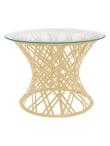 Стол Бонго мини со стеклом (бесцветный), бежевый, диаметр 0,40 м - купить в интернет-магазине Diopt.ru