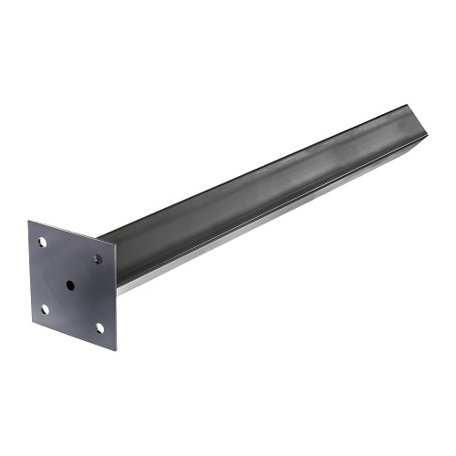 Опора изготовлена методом сварки и состоит из стальной площадки с прикрепленной к ней вертикальной трубой. Продуманная конструкция предусматривает наличие отверстий в опорной части, что значительно упрощает и ускоряет процесс монтажа.