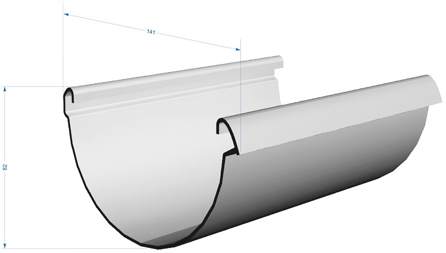 Эта система создана для самых высоких нагрузок. Ширина желоба — 141 мм, диаметр трубы — 100 мм. Это позволяет отводить до 9,3 литров воды в секунду с каждого погонного метра трубы . Такой мощности хватит даже для зданий с кровлей площадью более 250 м² .